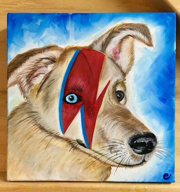 Including acrylic, ink, watercolor on paper, velvet, or wood.